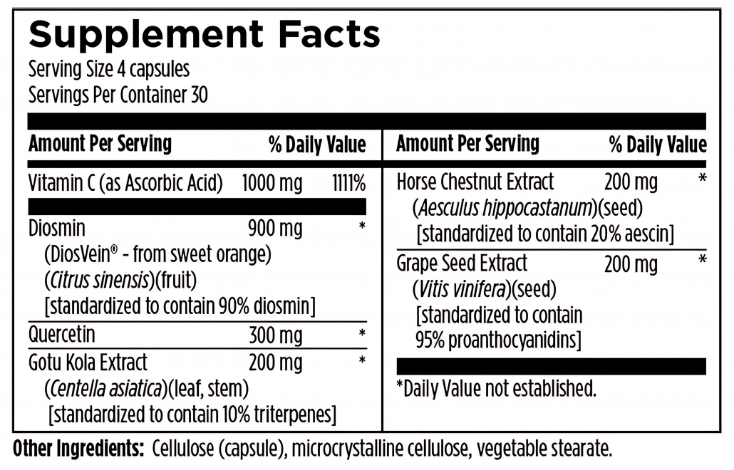 Synergistic formula of botanical extracts to support blood vessel health, strength, and elasticity by promoting normal blood and lymph circulation and antioxidant status.