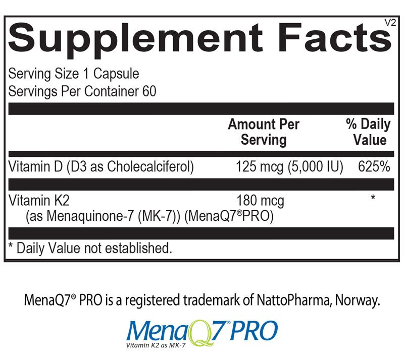 Vitamins K and D act in synergy in the process of supporting and maintaining bone, cardiovascular and immune health. Ortho Molecular Products is the exclusive provider of MenaQ7® PRO, the most widely studied form of vitamin K2 as MK-7.