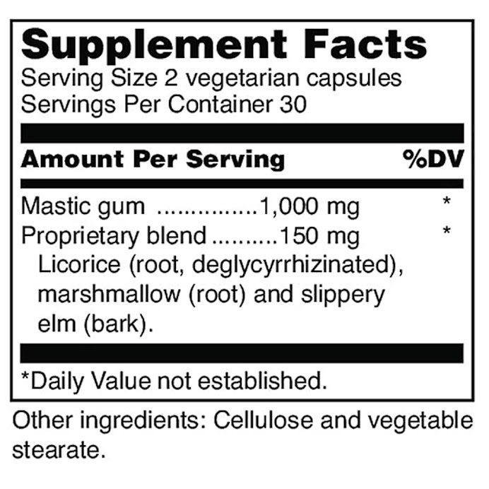 Stomach Relief: Slippery elm bark provides traditional support for a healthy stomach lining and intestinal tract. - Digestive Health: This supplement provides 1000 mg of mastic gum to support the stomach lining.