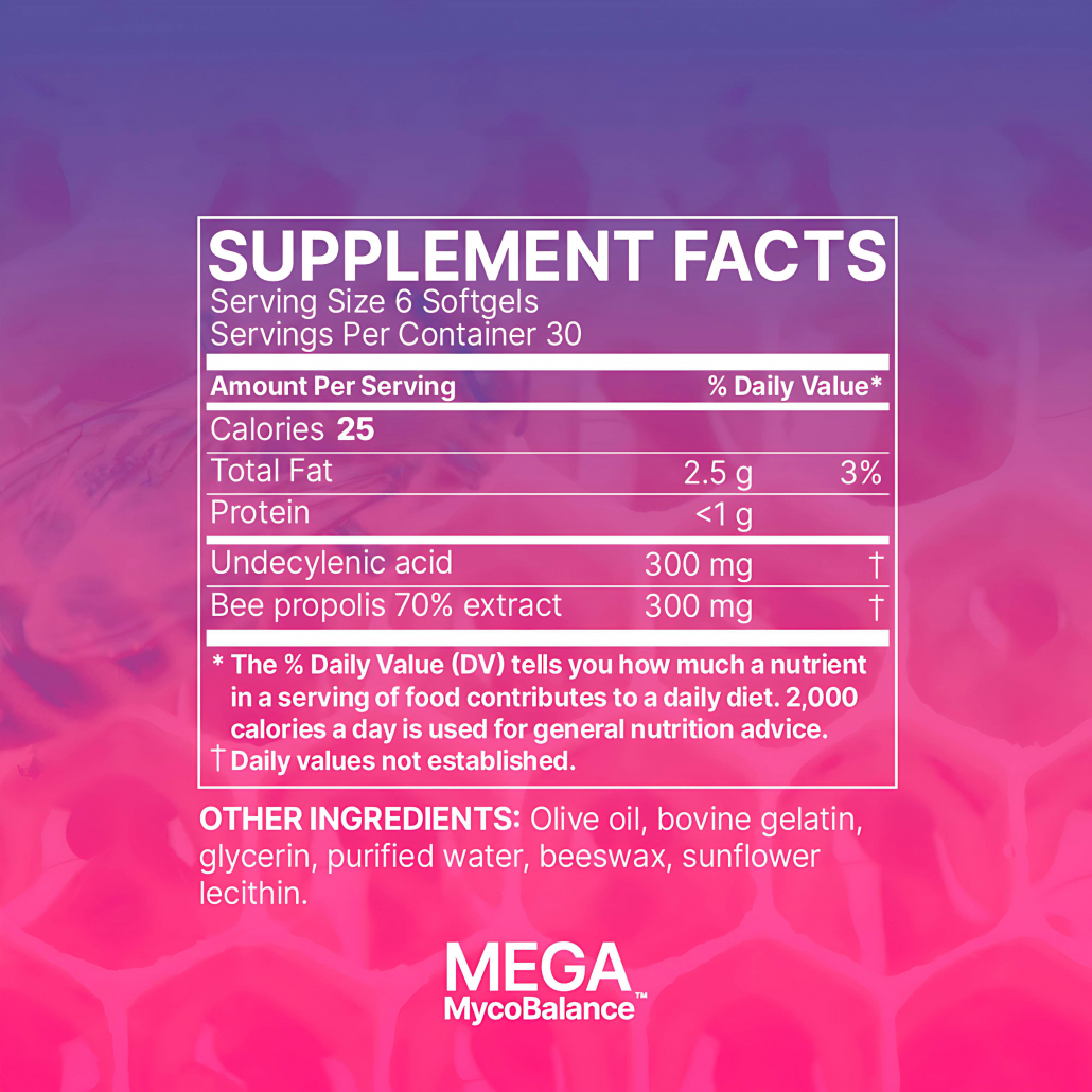 - MegaMycoBalance™ is formulated with undecylenic acid and bee propolis to support healthy yeast and fungal balance in the body.