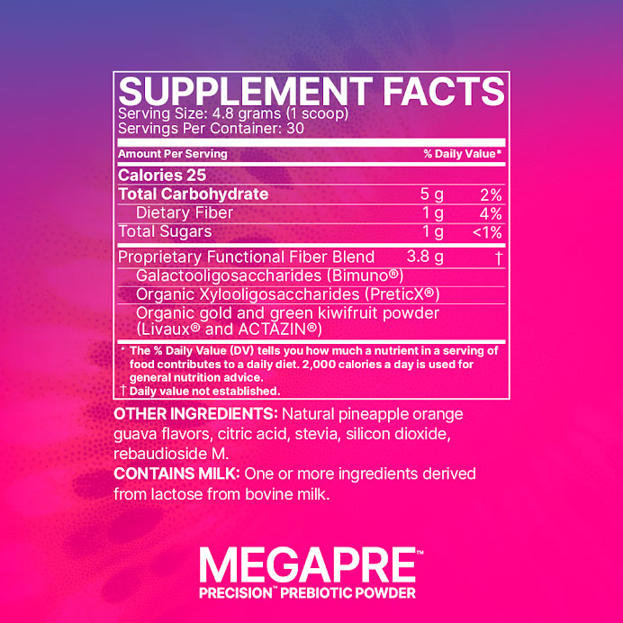 - MegaPre™ is a cutting-edge Precision Prebiotic™ supplement made up of clinically-tested, non-digestible oligosaccharides that can increase microbial diversity and selectively feed beneficial, keystone bacteria like Akkermansia muciniphila, Faecalibacterium prausnitzii, and Bifidobacteria.