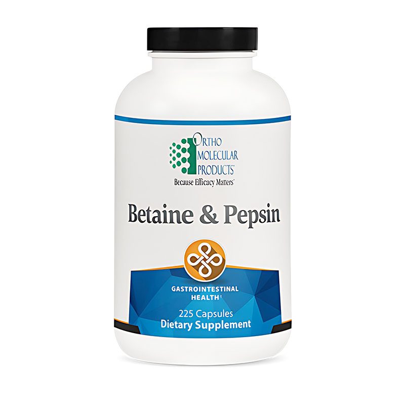 Betaine & Pepsin provides hydrochloric acid to help maintain gastric pH and supports overall nutrient absorption.