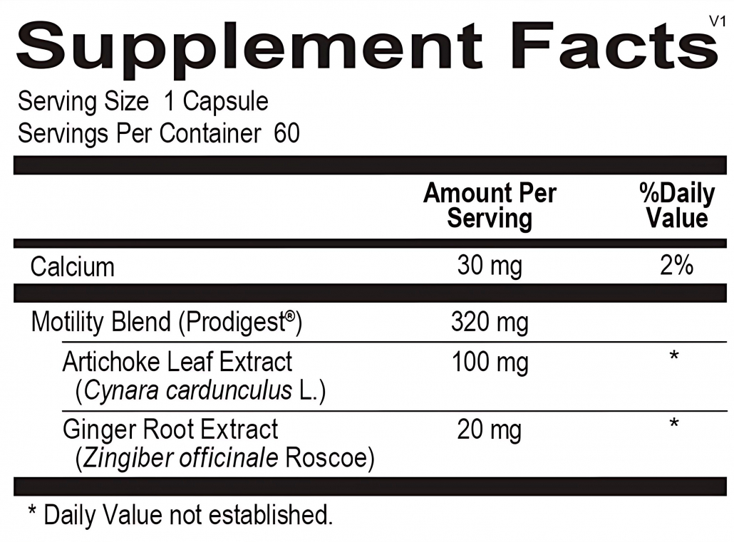 Motility PRO is a patented combination of ginger (Zingiber officinale) and artichoke leaf extract (Cynara cardunculus L.) delivered at a clinically proven dose to restore gastric motility, improve digestion, and relieve temporary gastric discomfort.