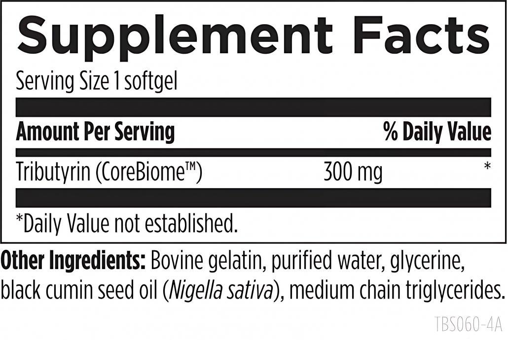 Delivers a unique fusion of three butyrate molecules. Butyrate is a short-chain fatty acid that supports gut barrier integrity, immune function, and regular bowel movements.