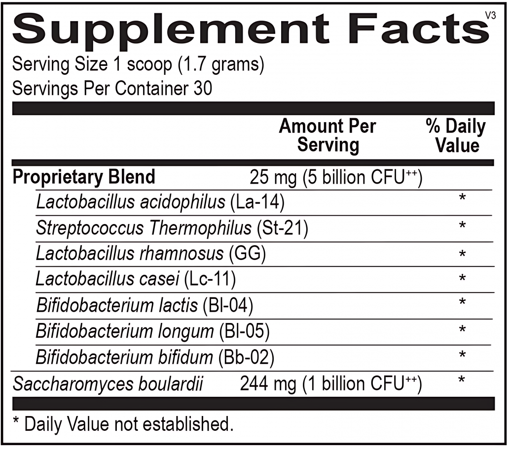 The strains of probiotic bacteria in FloraBoost have been strategically selected based on research which supports their survivability and adherence to the intestinal tract. FloraBoost comes in a powder form for easy administration to children.