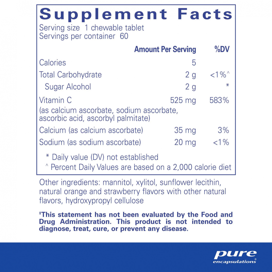 - One tablet of Vitamin C chewables contains the same amount of vitamin C found in eight oranges.