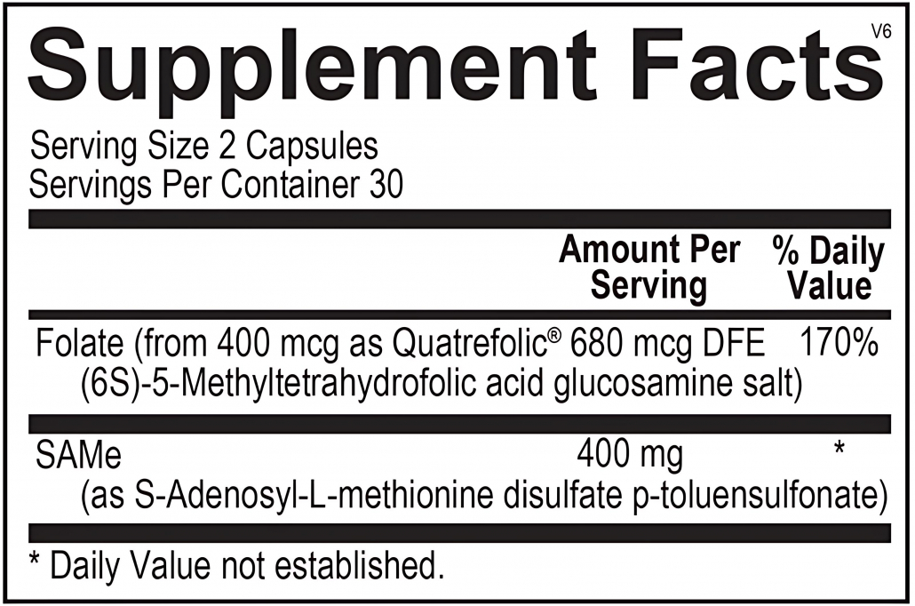 As a donator of methyl groups, SAMe supports glutathione production, liver health, musculoskeletal and joint comfort, and a positive mood.