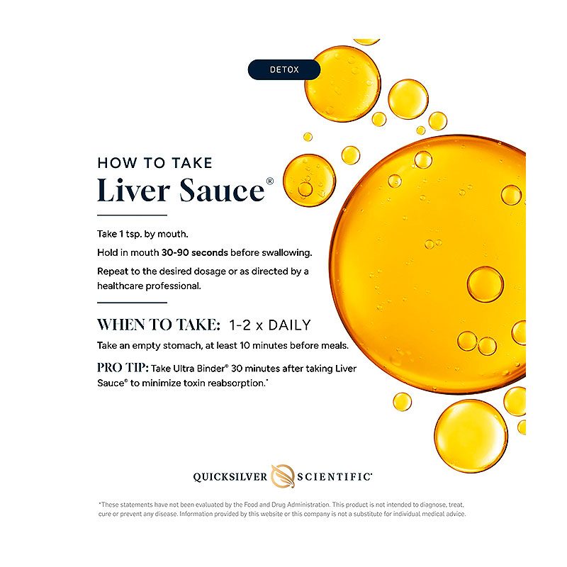 - “Push” – Liver Sauce® blends phytonutrients and four potent bitters that support the phases of detox and help ‘push’ toxins through the body.