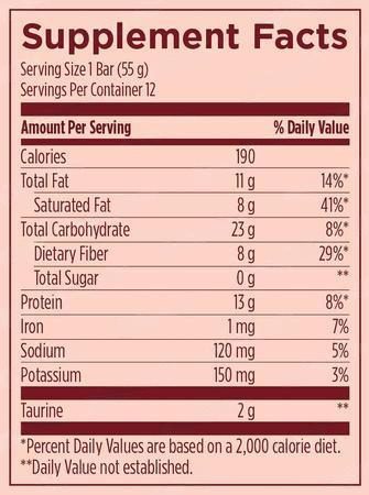 - Each Bone Broth Chocolate Crunch bar has 4 grams of net carbohydrates, no sugar, and 8 grams of fiber.