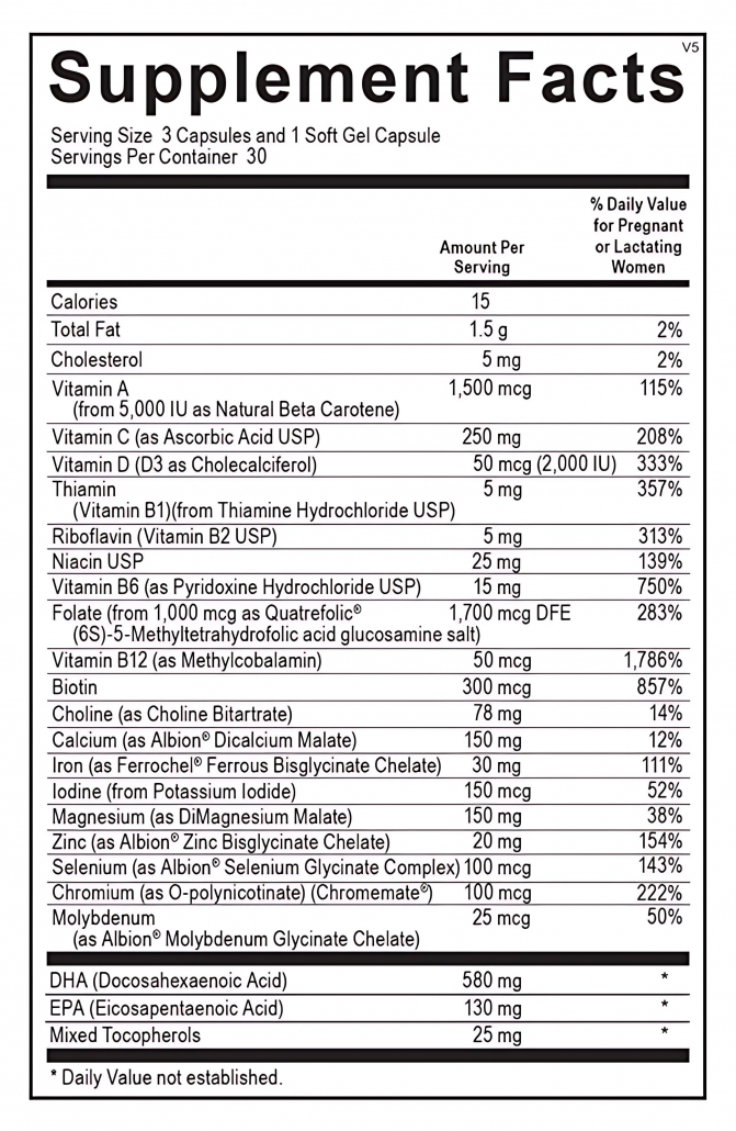 Prenatal Complete with DHA is a comprehensive, hypoallergenic, prenatal multivitamin and mineral blend that provides high-quality nutrients plus high-concentration DHA to support each phase of pregnancy, from preconception to postnatal.